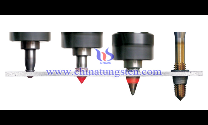 硬質(zhì)合金熱熔鉆頭利用高速旋轉(zhuǎn)和高軸向壓力在薄管或薄板上產(chǎn)生大量摩擦熱,鉆頭的溫度可達(dá)900度,加工點(diǎn)位的溫度也達(dá)到650-750度。加工點(diǎn)位的材料處于“超級(jí)可塑性”狀態(tài),鉆頭將這部分材料移位并塑型形成襯套。襯套的高度可為原工件厚度的3-4倍。